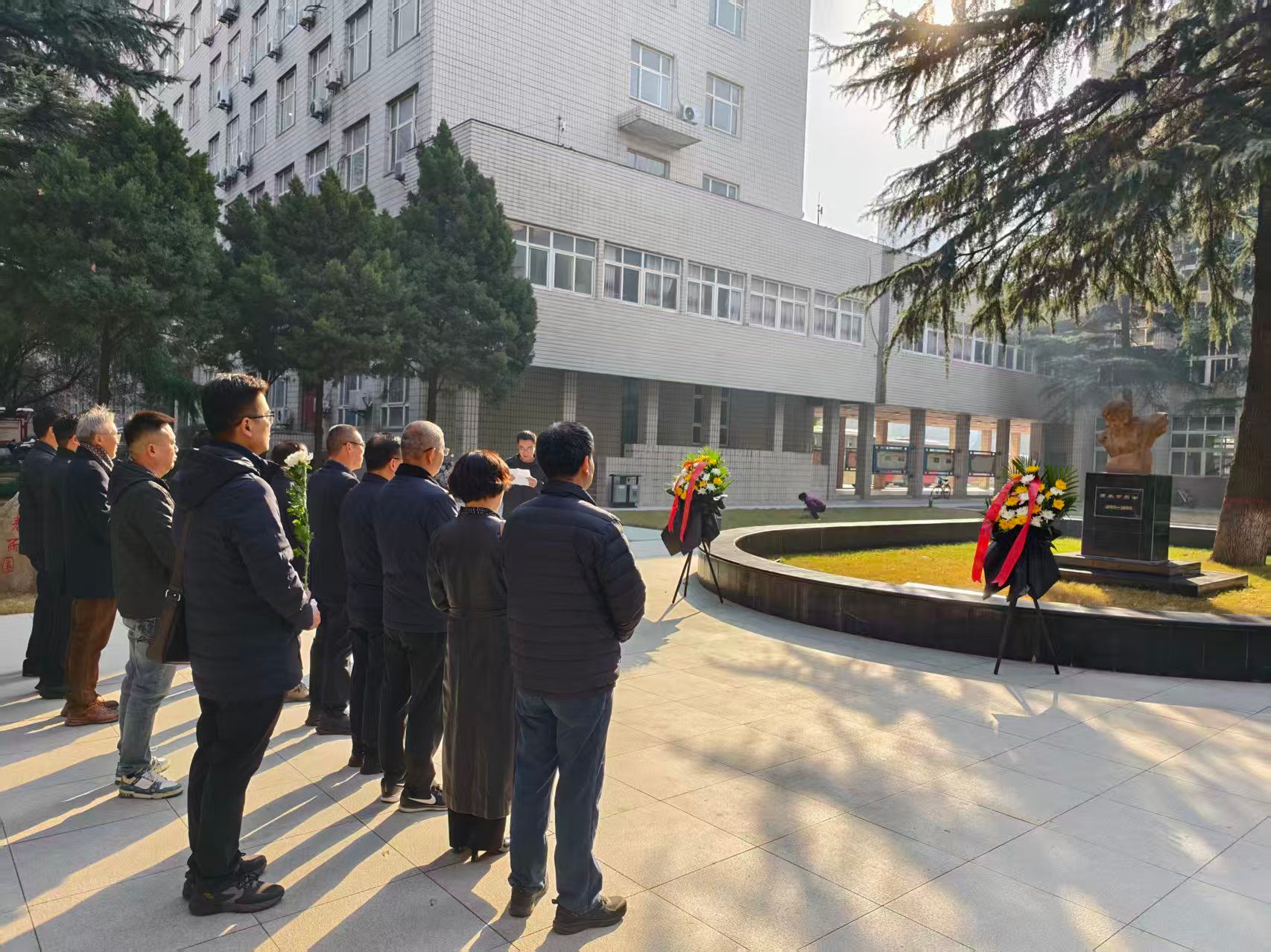随后,全体人员来到“春雨园”,向唐春雨烈士雕像敬献鲜花,深切缅怀这位为救人而英勇牺牲的优秀校友。