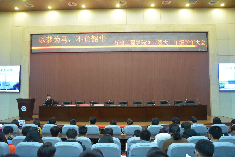 12月4日晚,“以梦为马,不负韶华”,十大足彩平台 2017级大二学年年级大会在鄠邑校区弘石报告厅召开,本次大会由石工院2017级辅导员孙浩哲老师主持,十大足彩平台 学生管理办公室主任孙会珠老师和全体2017级同学共计360余人参加了本次大会。